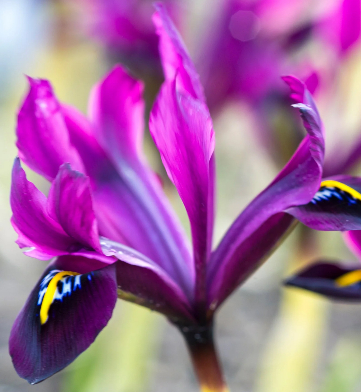 Iris reticulata: this beautifully delicate miniature iris is one of the first to flower. Despite its fragile appearance it is tough and will withstand deep frost without protection. It is particularly lovely to see it in February when the weather can be bleak. There are two varieties available with 4 or 5 bulbs in each lovely terracotta pot: £5.50