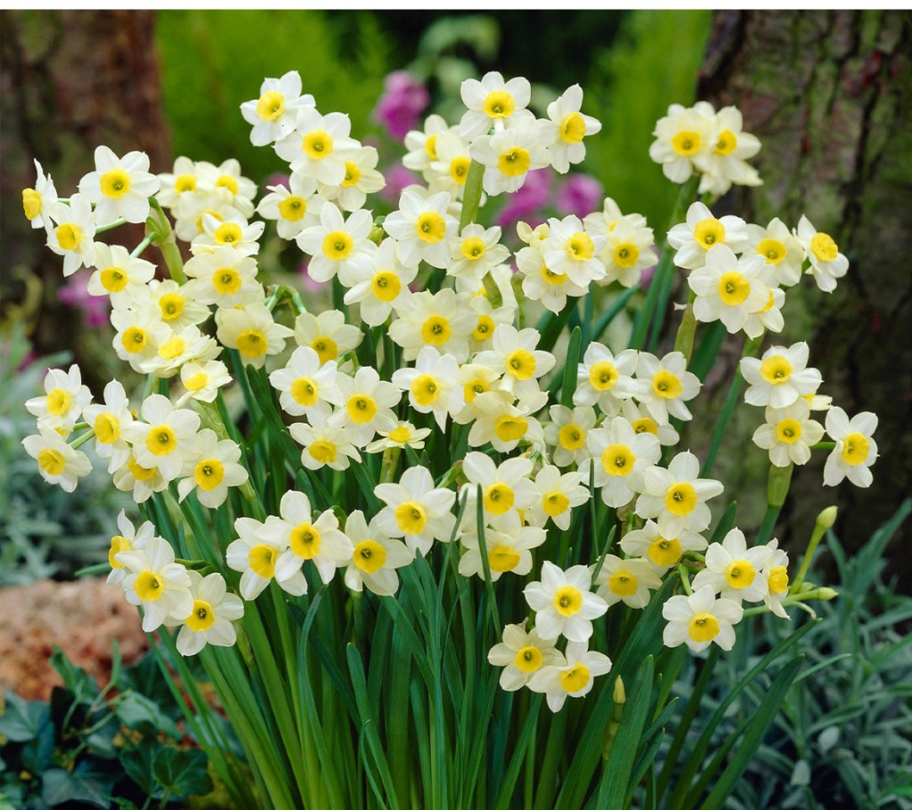 Sun Disc: A very sweet miniature daffodil with unusual flattened cup in the middle of each flower. Available in a range of pots starting at £3.00