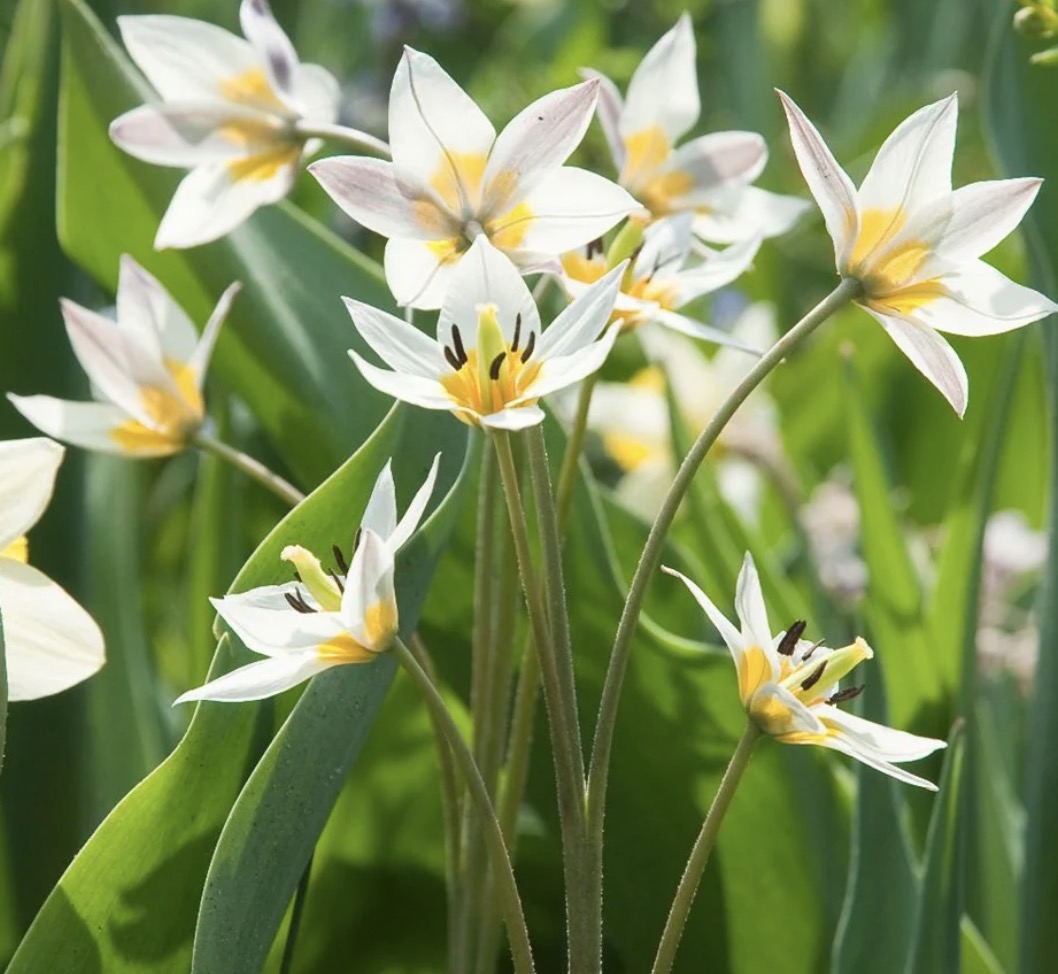 Tulip turkestanica: in old terracotta pots £5.50. A truly beautiful species tulip which naturalises and can be grown in a pot, in a border or through grass in a meadow type scheme. Its star like flowers hover above grey green leaves.
