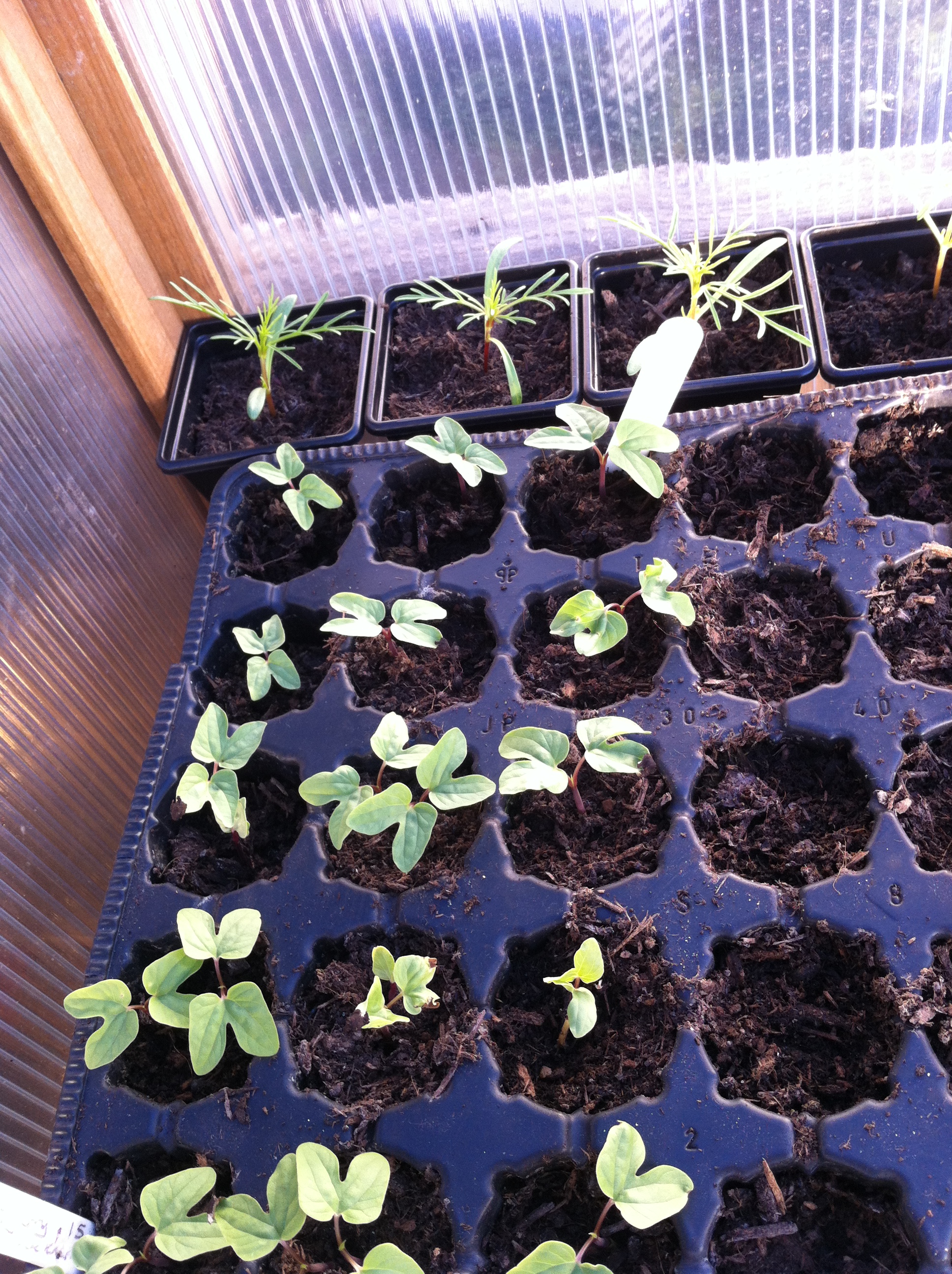 While I am fretting about all the different complications in my work and family life, my little plants are growing steadfastly on – even surviving my lack of watering and casual neglect. The sweet peas I left outside by mistake seem fine as do the ammi majus and the little plants of moth mullein which have flourished in the sunshine over last few days.