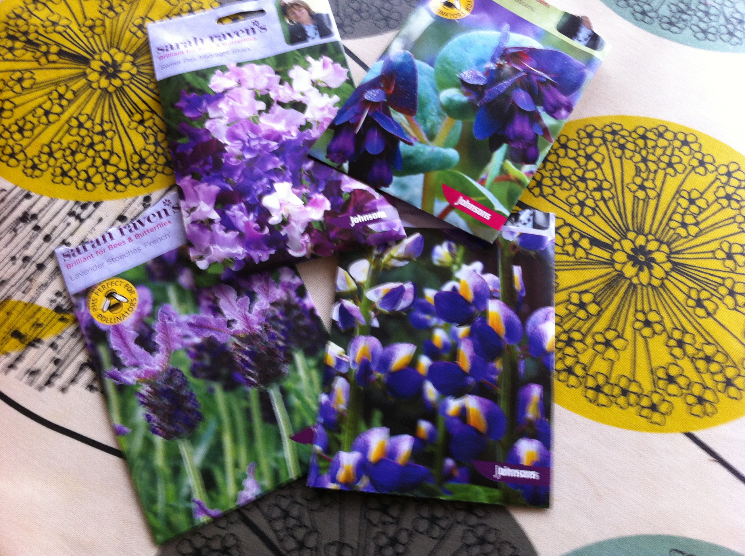 A mixed day of darting into work to collect all that needs to be done and driving the car to see if it’s fixed (it’s not) and walking the poor old dog. Somewhere in the middle, managed to sit in the warmth of the sun and plant some seeds of cerinthe, lupin blue javelin, sweetpeas and lavender into pots. Completely concentrating, it was happiness almost without even noticing it.