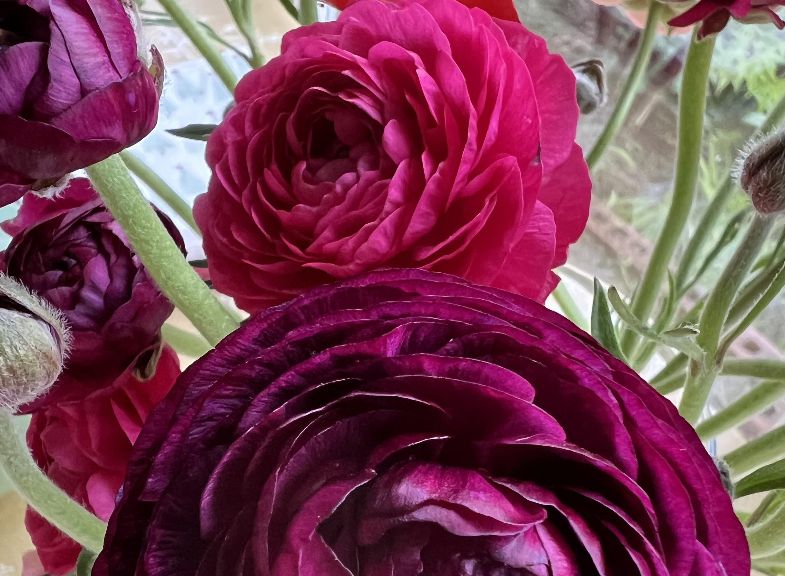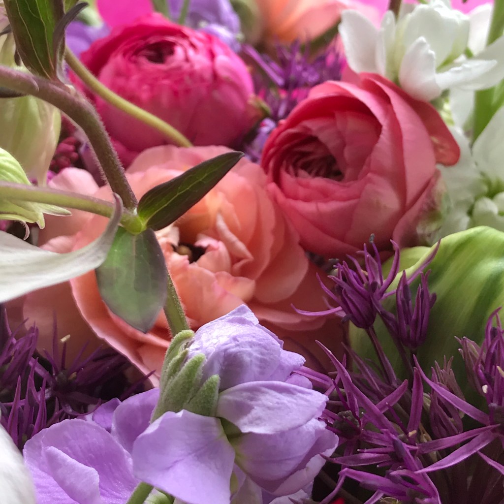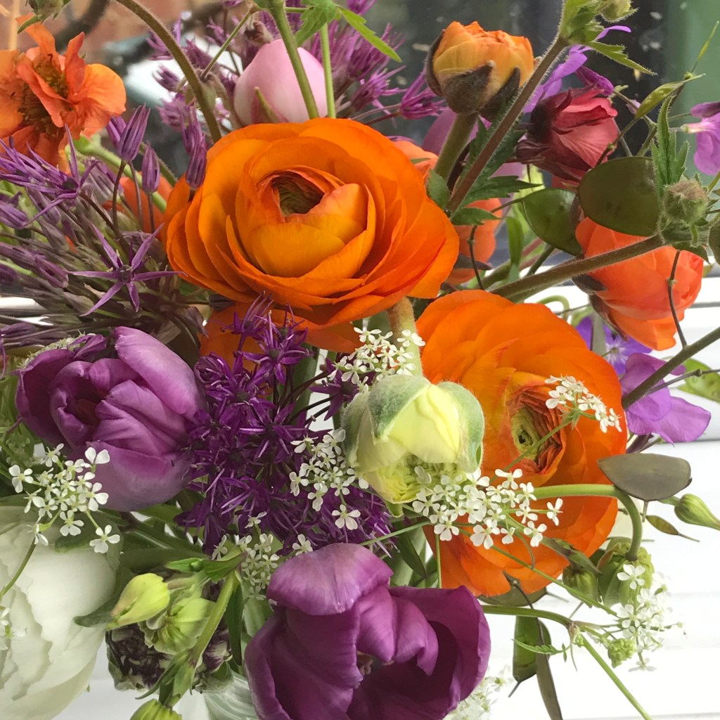 The tulips are over, but the ranunculus are flowering in a range of rich colours along with geums, astrantia and hesperis. Other cottage garden lovelies such as cornflowers, anemones, lupins and aquilegia will also be in the mix of this week’s bunches and bouquets along with the starry globes of alliums.