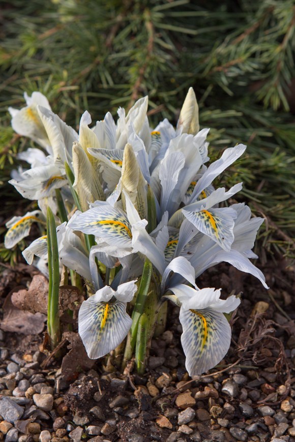 Iris Reticulata is an exquisite miniature iris which blooms in late Winter or early Spring. or earlier if brought indoors. Can be planted in a sunny, well drained spot after flowering. This variety is one of the most reliably perennial.