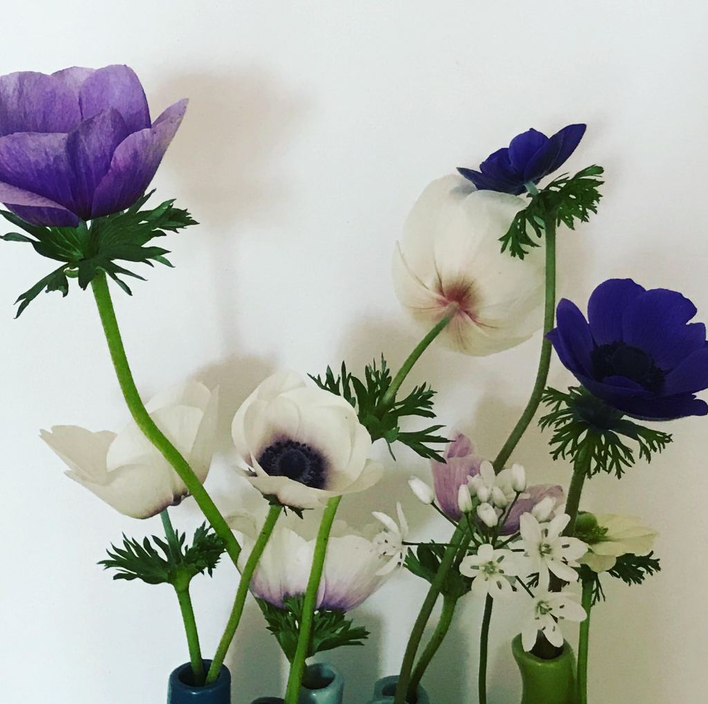 Blue skies and warmth in the sun means more and narcissi, anemones and even ranunculus are opening in the garden; these (supplemented with other Spring loveliness from British growers) will be for sale this Sunday at Wolvercote Community Market.