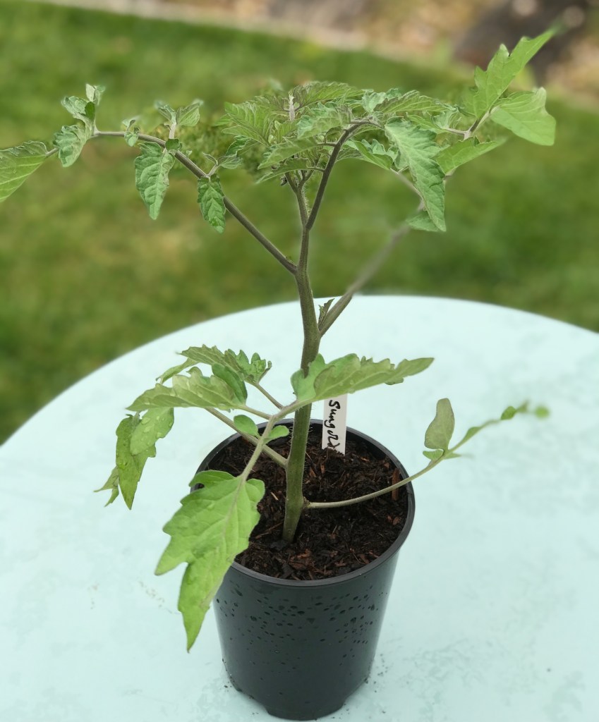 Black Krim: Perhaps the most delicious tomato of all. It can be grown either under cover or outside once the weather is good. It produces large fruit in abundance which are fantastic either eaten raw or cooked in sauces. These are already big tall plants starting to flower. They have been potted on so can stay in their pots for a few weeks until they are planted out. £2.00 a large pot.